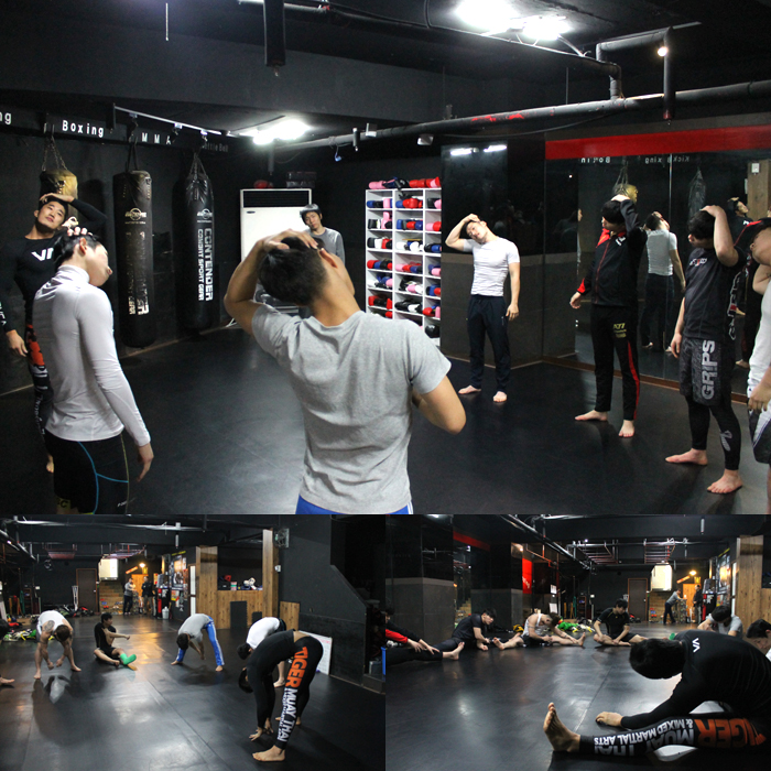 먼저, 꼼꼼히 스트레칭을 해주는 것이 종합격투기 수업의 첫 시작이었습니다.