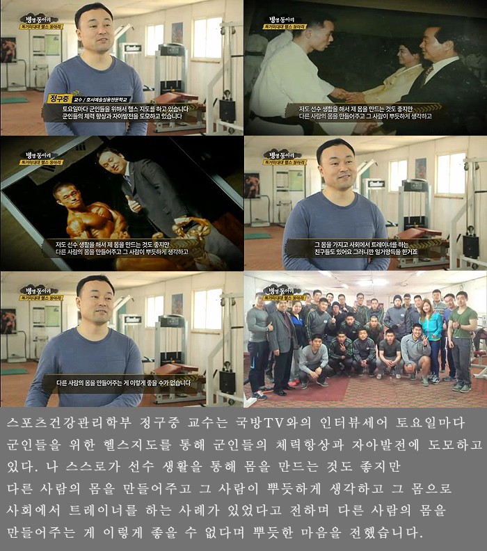 현재 정구중 교수는 토요일마다 군부대를 찾아 군인들의 체력도모를 돕고 있습니다.