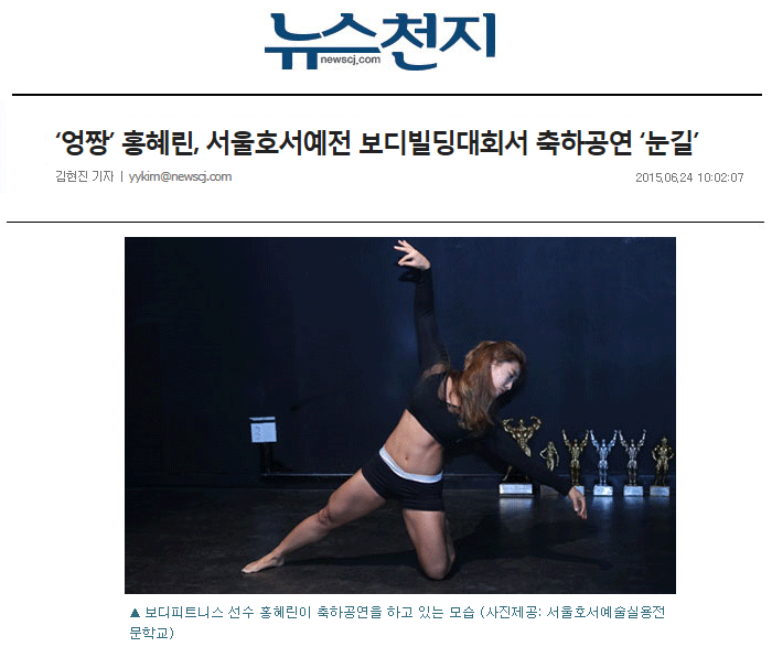 [천지일보=김현진 기자] 일명 ‘엉짱’으로 유명한 헬스트레이너 홍혜린이 서울호서예술실용전문학교(서울호서예전)가 최근 주최한 제4회 피트니스&보디빌딩 대회에서 축하공연을 한 사실이 알려져 화제다.
