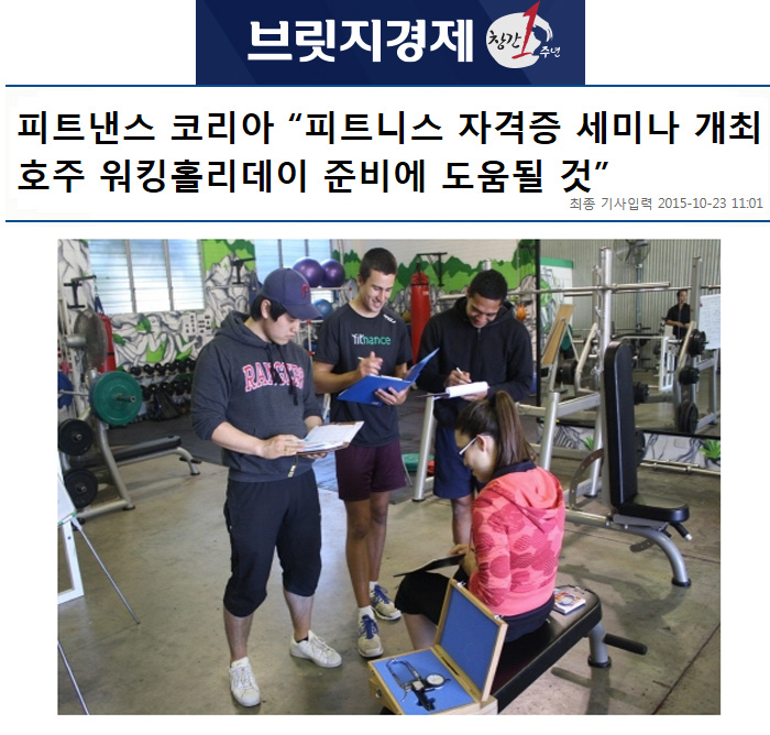 호주 주정부에서 공인한 피트니스 자격증에 대한 세미나가 한국에서 열린다.
