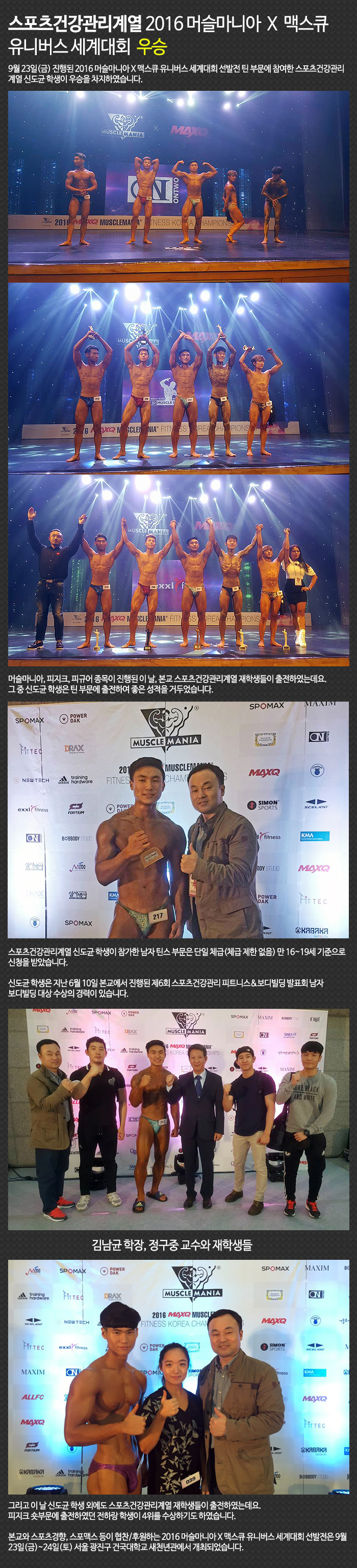 9월 23일(금) 진행된 2016 머슬마니아 X 맥스큐 유니버스 세계대회 선발전에 참여한 재학생들의 수상소식 전해드립니다.