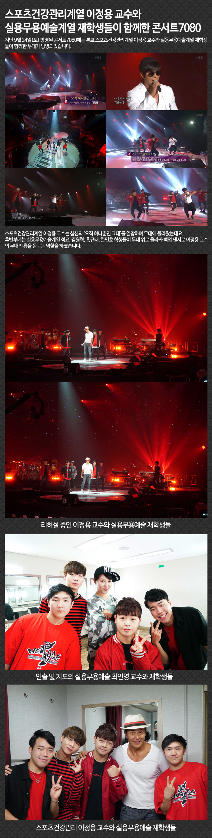 지난 9월 24일(토) 방영된 콘서트7080에는 본교 스포츠건강관리계열 이정용 교수와 실용무용예술계열 재학생