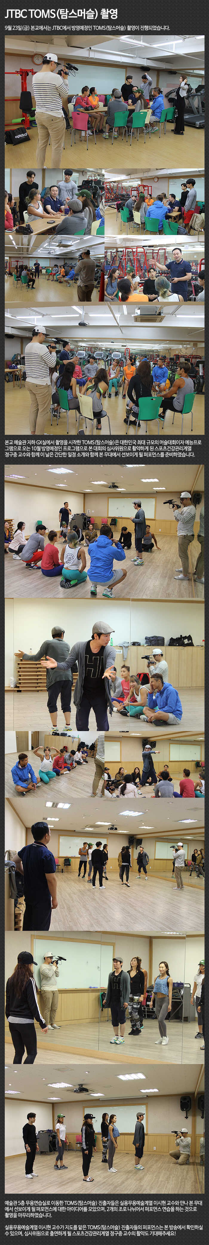 9월 23일(금) 본교에서는 JTBC에서 방영예정인 TOMS(탐스머슬) 촬영이 진행되었습니다.
