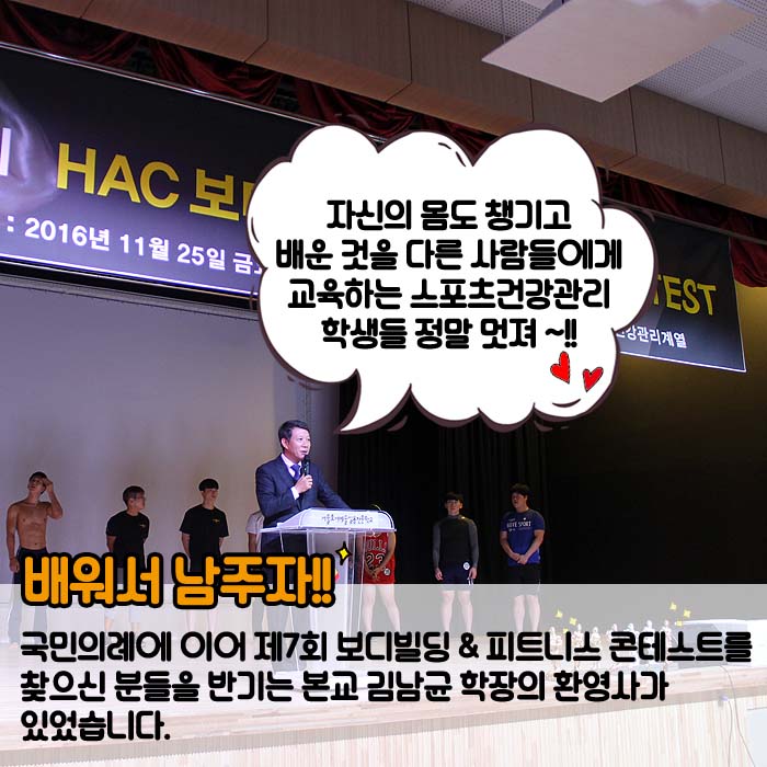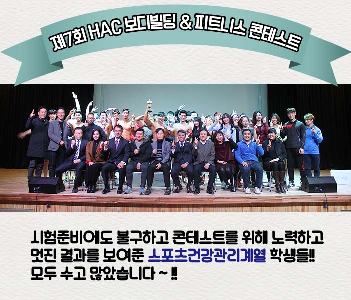 11월 25일(금) 본교에서는 스포츠건강관리계열 제7회 보디빌딩 & 피트니스 콘테스트가 진행되었습니다.