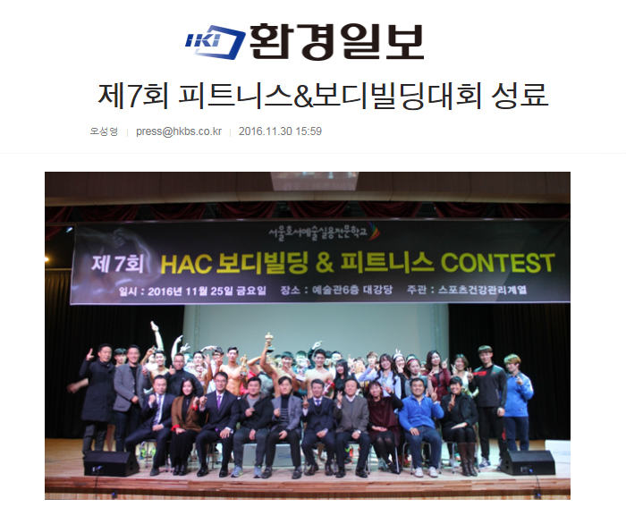 [환경일보] 오성영 기자 = 서울호서예술실용전문학교(이하 호서예전) 스포츠건강관리계열이 지난 교내 대공연장에서 개최된 제7회 피트니스&보디빌딩 대회를 성공적으로 마무리 하였다고 30일 전했다.