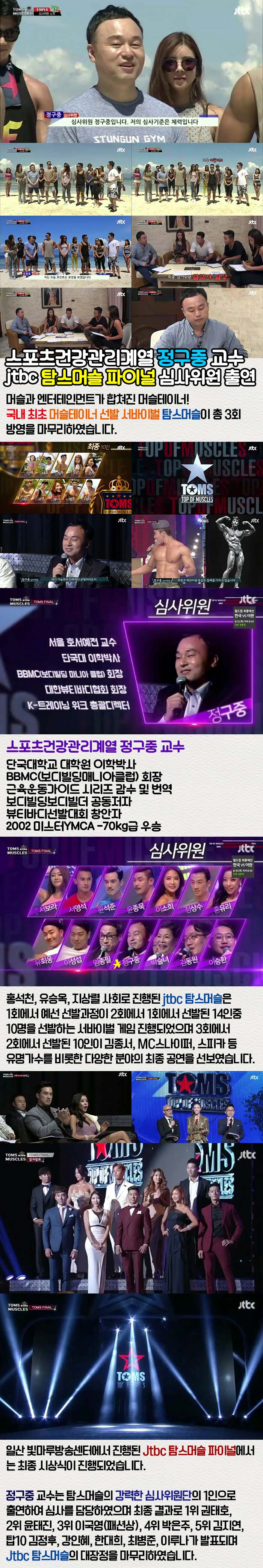 <스포츠건강관리>정구중 교수 jtbc 탐스머슬 파이널 심사위원 출연