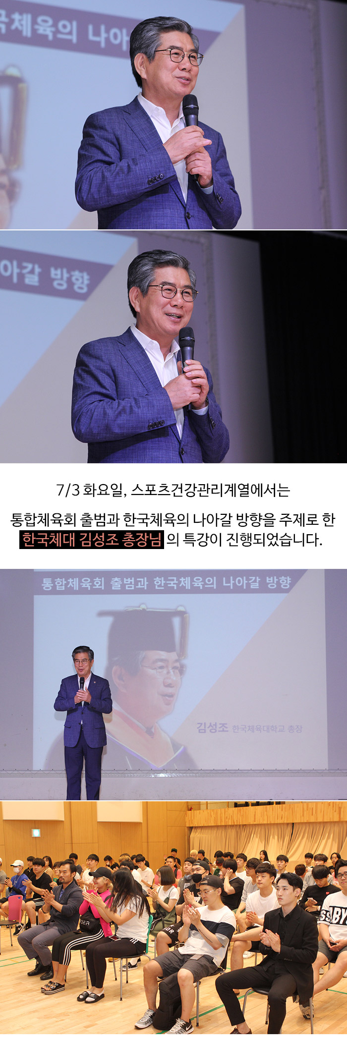 7/3 본교 스포츠건강관리계열에서는 한국체대 김성조 총장님의 초청특강이 있었습니다.