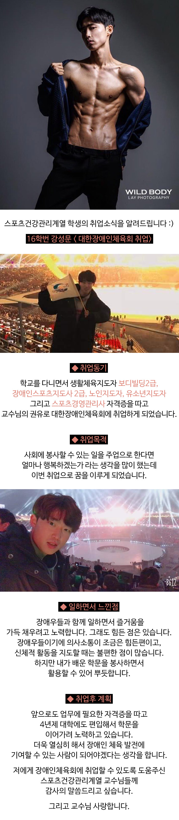 스포츠건강관리계열 학생의 취업소식을 알려드립니다:)