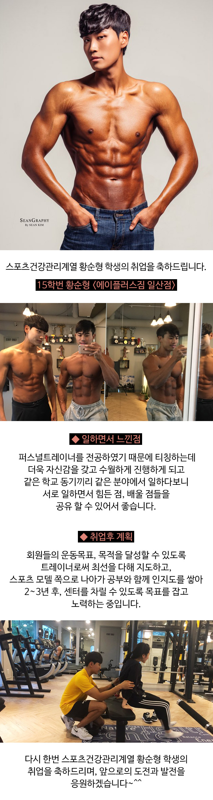 스포츠건강관리계열 15학번 황순형 학생의 취업을 축하드립니다.