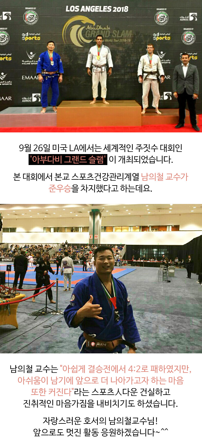 본 대회에서 본교 스포츠건강관리계열 남의철 교수가 준우승을 차지하였습니다.