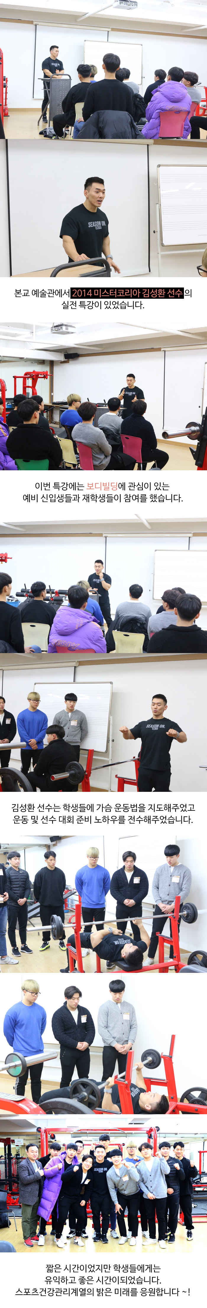 본교 예술관에서 2014 미스터코리아 김성환 선수 의 실전 특강이 있었습니다.