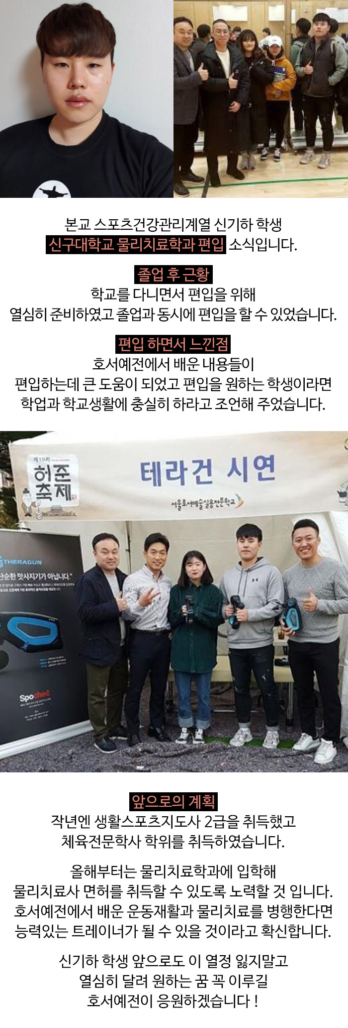 스포츠건강관리계열 신기하 학생 신구대학교 물리치료학과 편입 소식