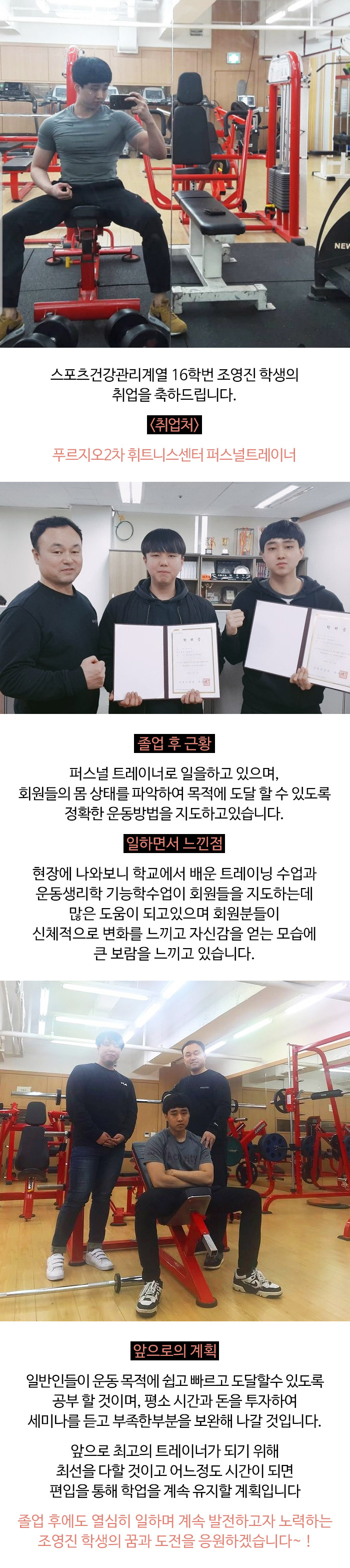 스포츠건강관리계열 16학번 조영진 학생 퍼스널트레이너 취업 소식