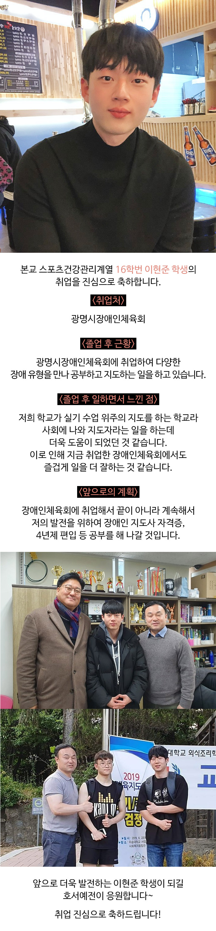 스포츠건강관리계열 16학번 이현준 학생 취업 소식