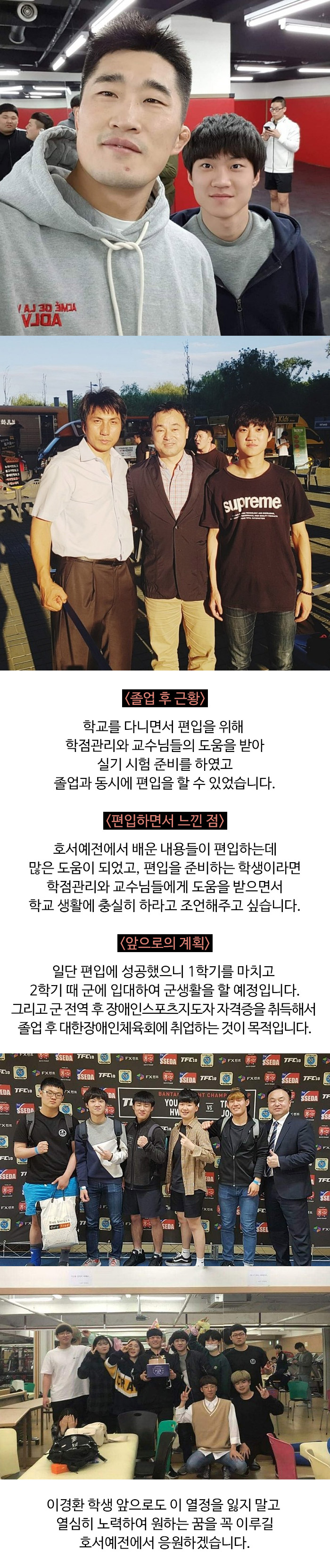 스포츠건강관리계열 이경환 학생 용인대학교 격기과 편입 소식입니다.