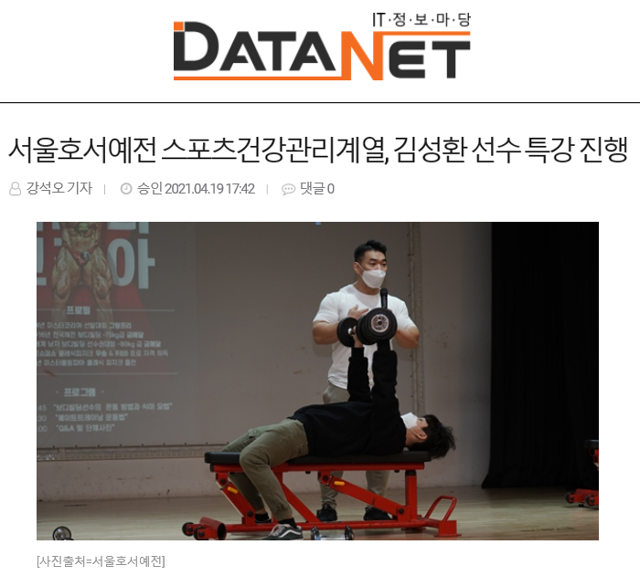 서울호서예술실용전문학교(이하 서울호서예전) 스포츠건강관리계열이 미스터코리아 김성환 선수 특강을 진행했다고 밝혔다.