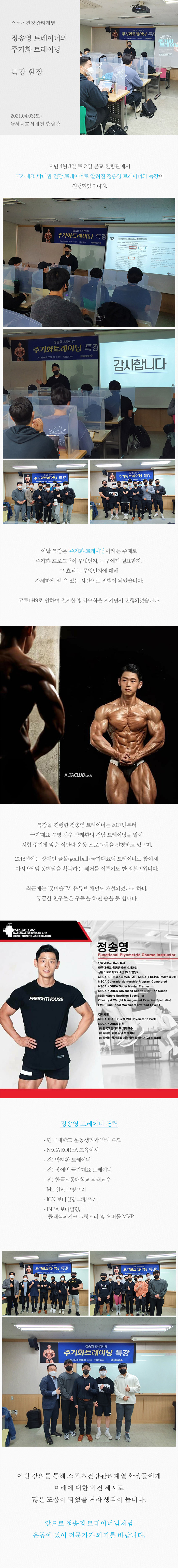 스포츠건강관리계열 정송영 트레이너의 주기화 트레이닝 특강 현장