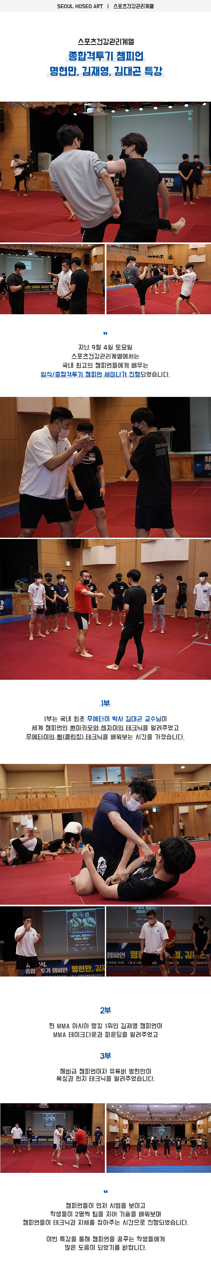 스포츠건강관리계열 종합격투기 챔피언 명현만, 김재영, 김대곤 특강 현장