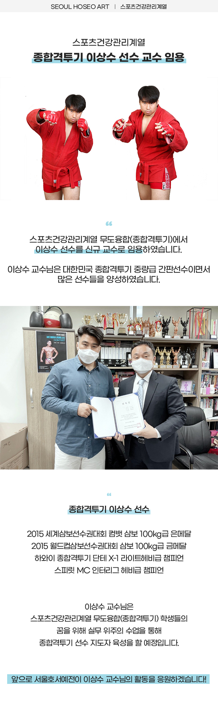 스포츠건강관리계열 종합격투기 이상수 선수 교수 임용