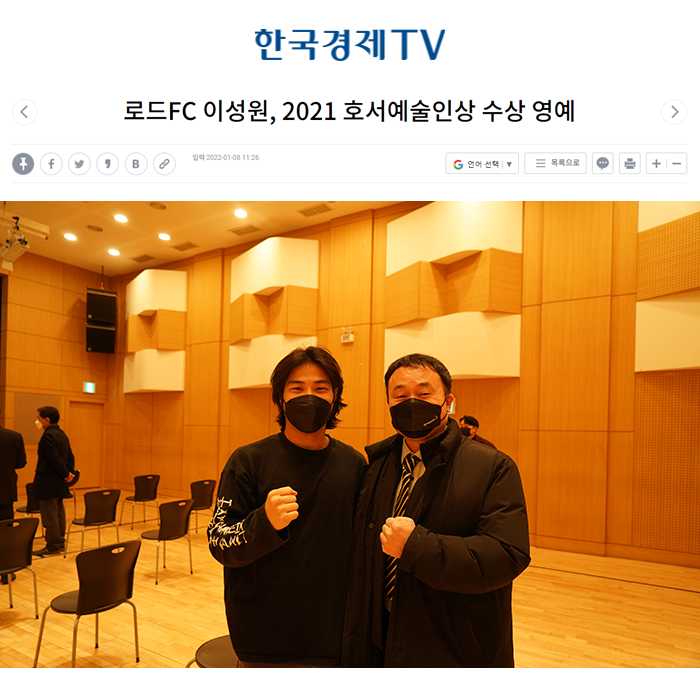 [언론보도] 로드FC 이성원, 2021 호서예술인상 수상 영예