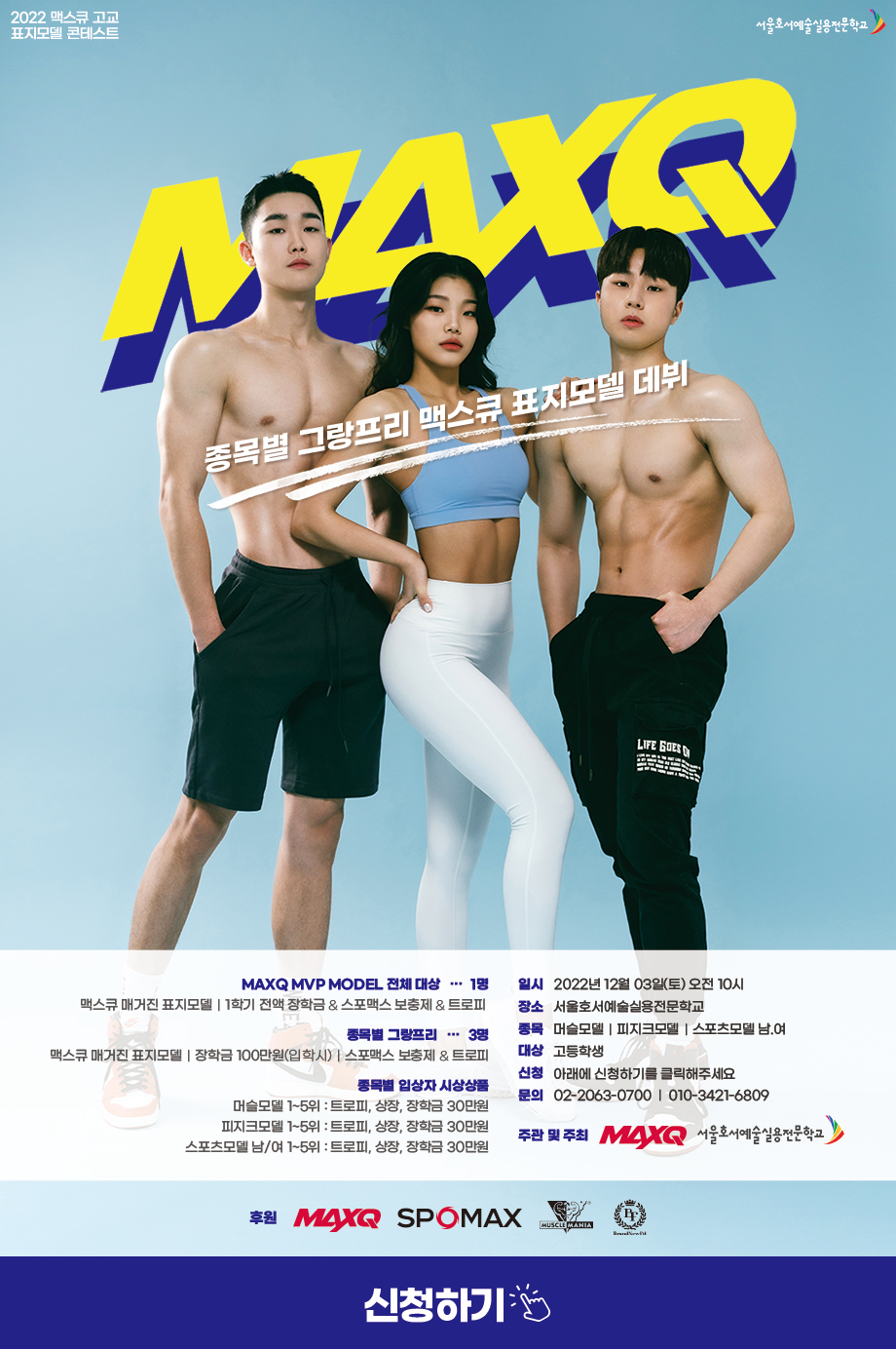 서울호서예술실용전문학교 스포츠건강관리계열 2022 맥스큐 고교 표지모델 콘테스트 신청하기