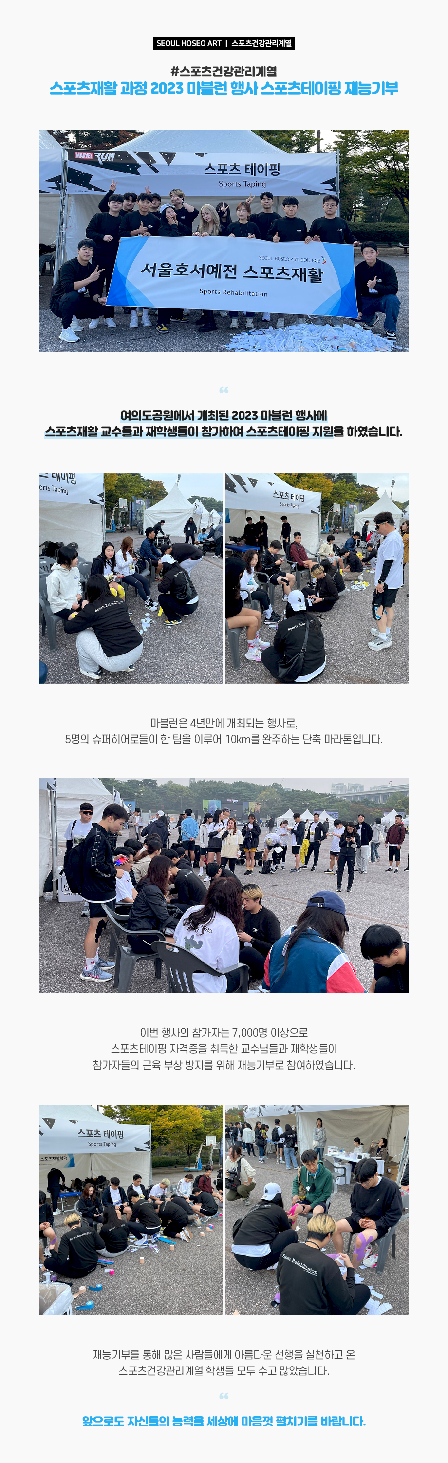 스포츠건강관리계열 스포츠재활 과정 2023 마블런 행사 스포츠테이핑 재능기부