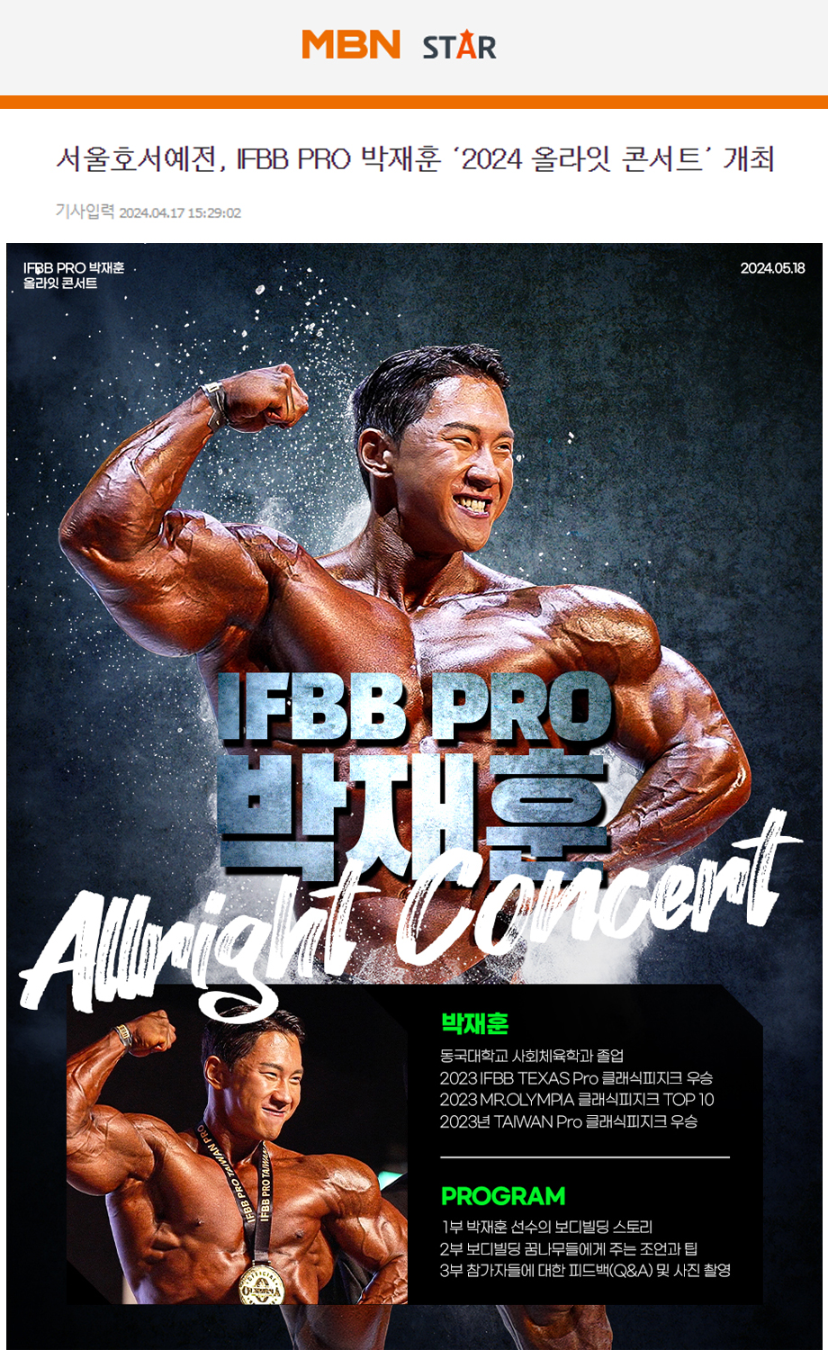 서울호서예전이 IFBB PRO 박재훈 ‘2024 올라잇 콘서트’를 연다.