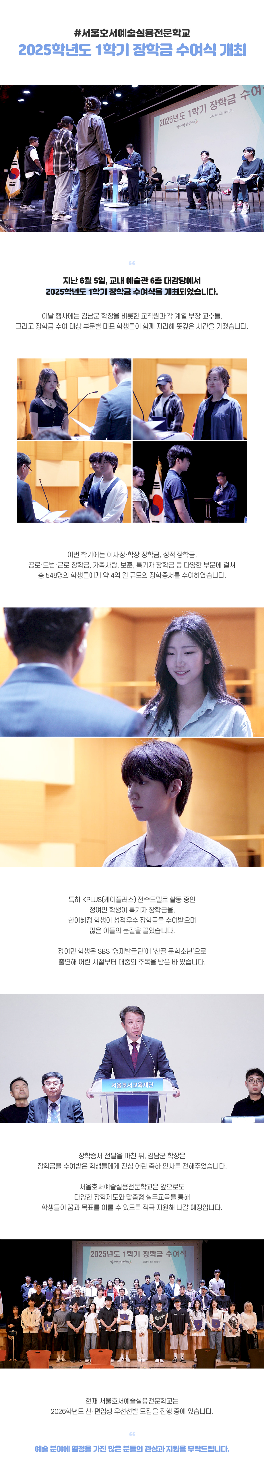 서울호서예술실용전문학교 2025학년도 1학기 장학금 수여식 개최