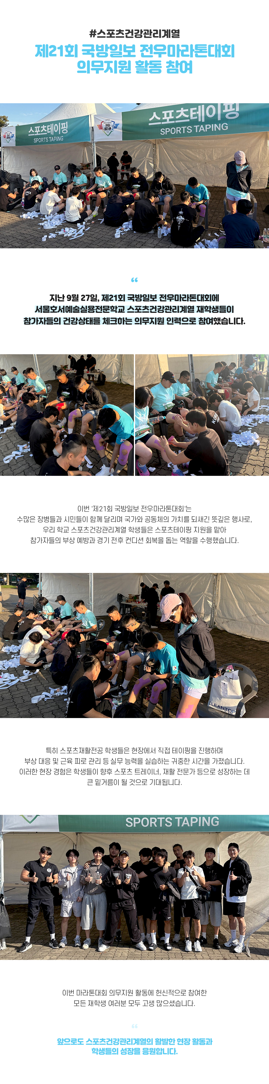 스포츠건강관리계열 제21회 국방일보 전우마라톤대회 의무지원 활동
