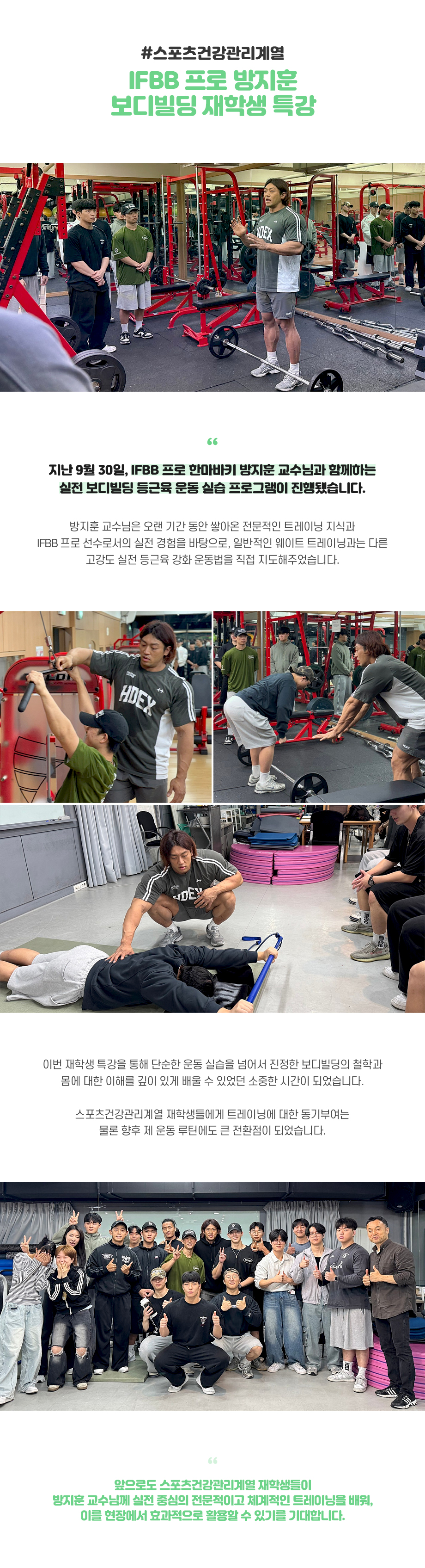 스포츠건강관리계열 IFBB 프로 방지훈 보디빌딩 재학생 특강