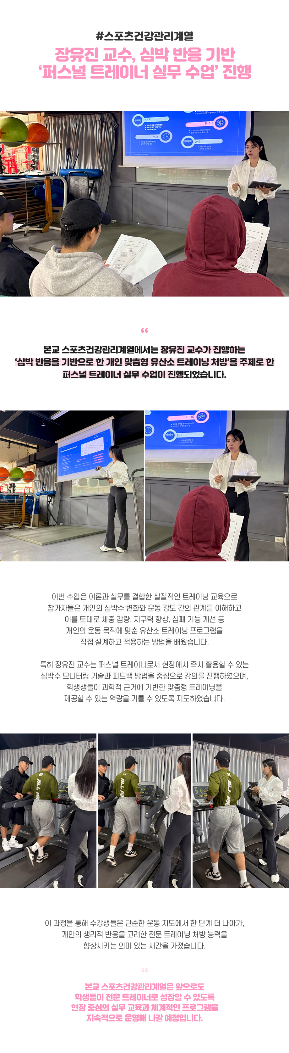 스포츠건강관리계열 장유진 교수, 심박 반응 기반 ‘퍼스널 트레이너 실무 수업’ 진행