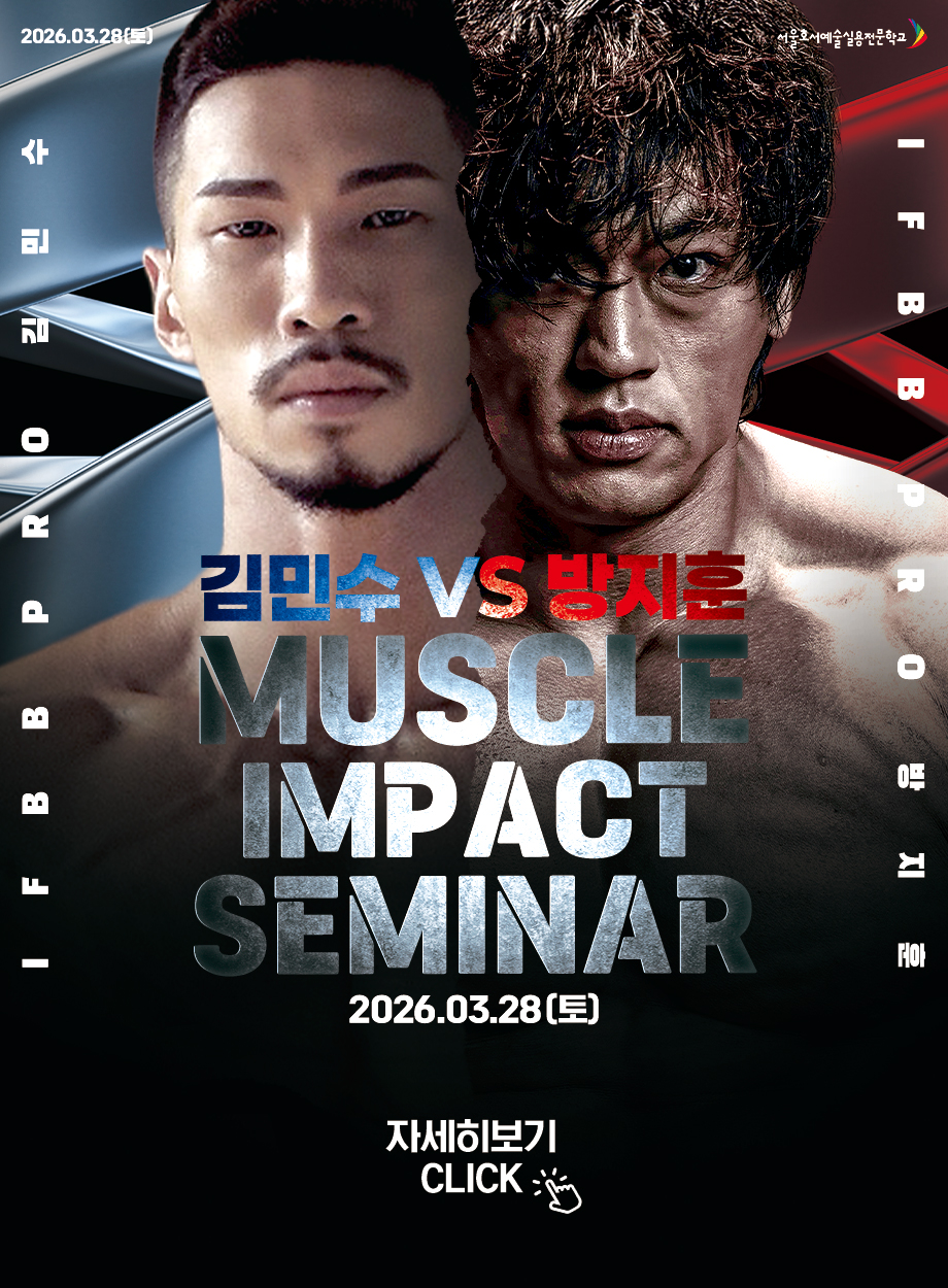 서울호서예술실용전문학교 스포츠건강관리계열 IFBB PRO 김민수vs방지훈 2026 MUSCLE IMPACT SEMINAR 신청하기