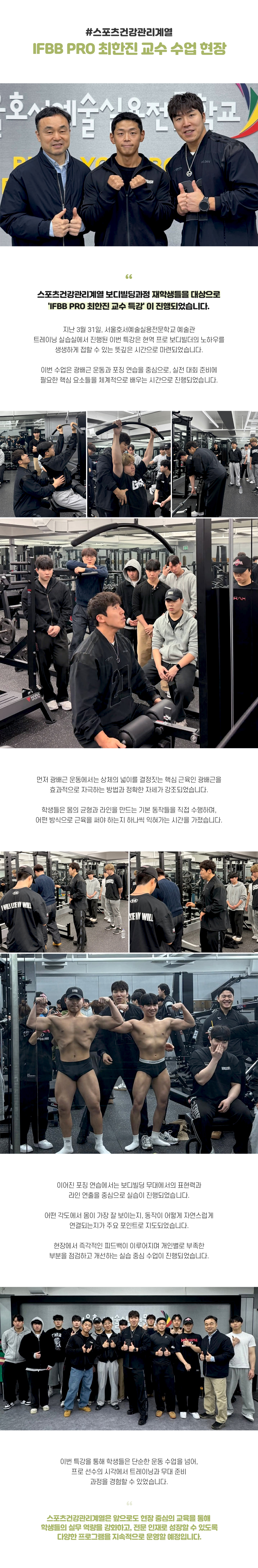 스포츠건강관리계열 IFBB PRO 최한진 교수 수업 현장