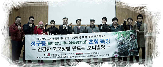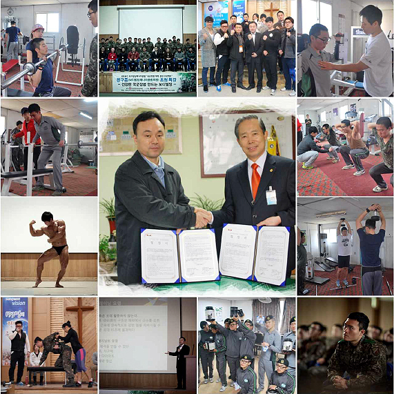 본교과 한국병영정보문화원의 MOU체결은 스포츠건강관리학부 정구중 교수의 '건강한 국군장병 만드는 보디빌딩' 초정 특강을 통하여 시작되었습니다.