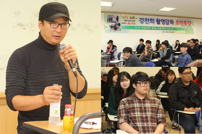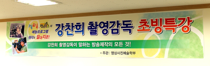 10월 31일 예술관 501호에서는 현재 1박2일, 런닝맨 등 국내 간판 예능프로그램의 촬영감독으로 활동중인 강찬희 촬영감독이 영상사진예술학부 학생들을 위하여 본교를 방문하여 주었습니다.