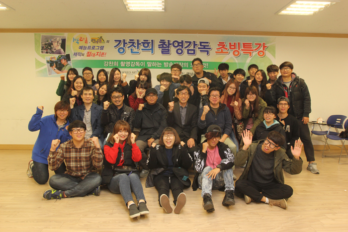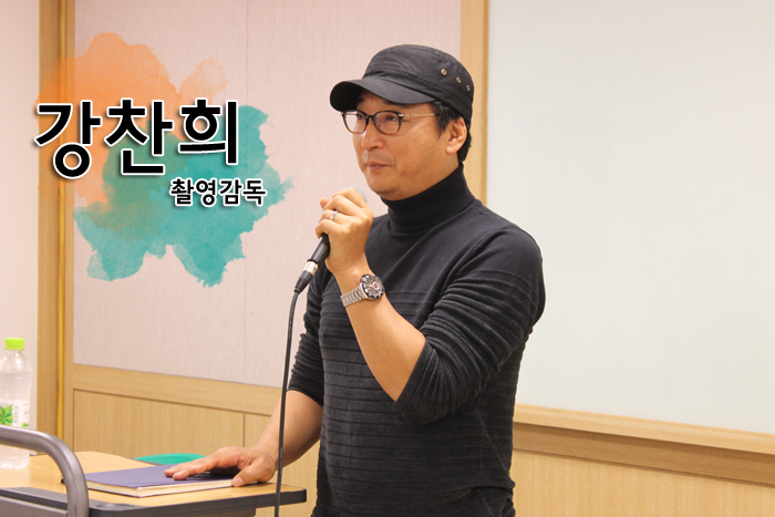 강찬희 촬영감독은 카메라 앞에 서는 것이 아직도 어색하다고 이야기하며, "나는 카메라 앞보다 역시 카메라 뒤에 직접 카메라를 잡는 것이 마음이 편하다." 며 카메라맨으로써의 모습을 보여주며 화기애애한 분위기 속에서 특강을 시작하였습니다.