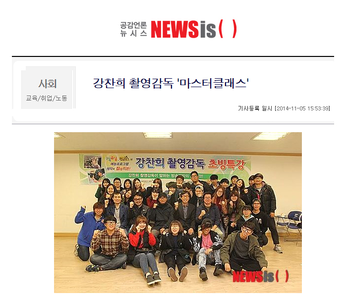 특강은 ‘강찬희 촬영감독이 말하는 방송제작의 모든 것’을 주제로 서울호서예술실용전문학교 영상사진예술학부 학생들을 대상으로 펼쳐졌다.