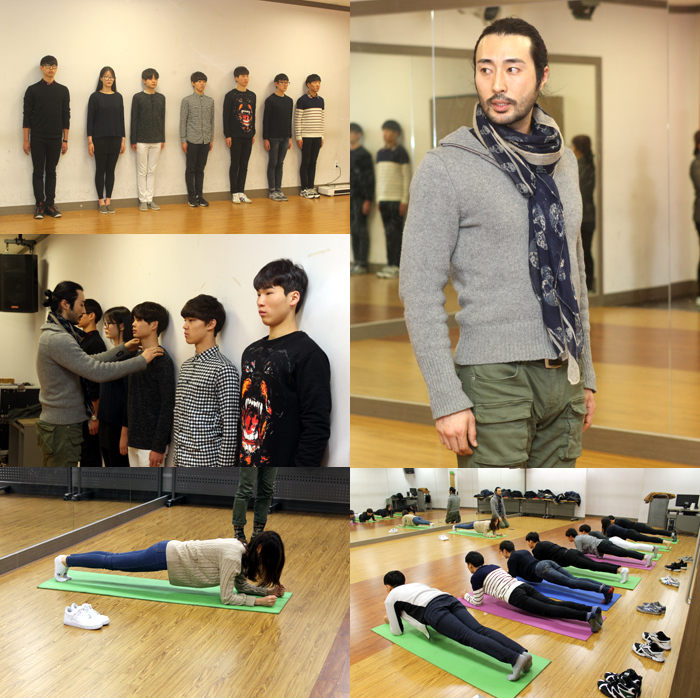 박상언 교수와 함께한 모델연기예술학부는 먼저 모델의 기본 자세부터 배워보았습니다.