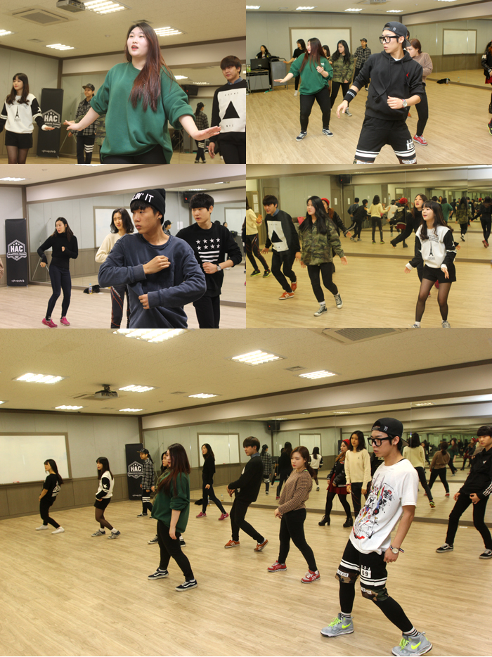 몇 번의 동작으로 나뉘어서 음악없이 연습을 해본 뒤 음악에 맞춰서 해보는 방식으로 진행되었으며, 참여한 학생들의 적극적인 참여로 체험학교가 아닌 실용무용예술학부 학생들의 수업시간으로 착각될 정도로 후끈후끈한 수업시간이었습니다~