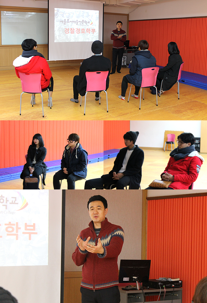 윤병훈 교수와 함께한 경찰경호학부는 먼저, 경찰경호학부에 대한 소개 후 경찰의 조직을 세부적으로 나뉘어 각 기능에 대해 알아보고 앞으로 경찰행정과와 경호안전과의 진출에 대해서 알아보는 시간을 가졌습니다.