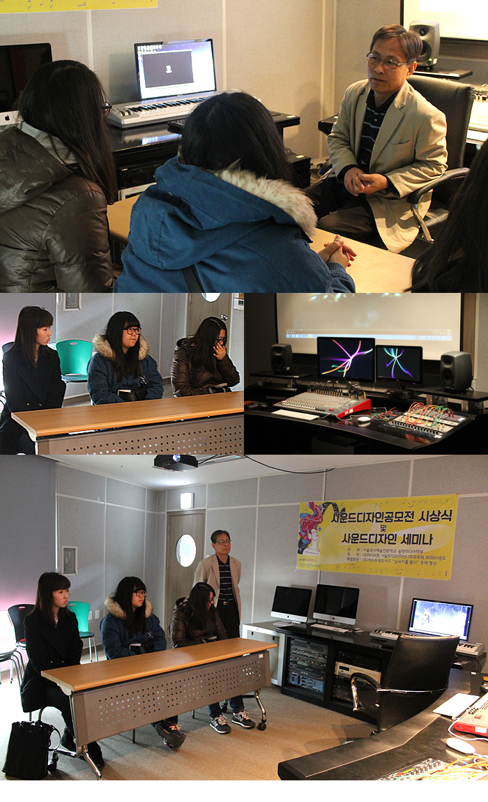 지난 음향미디어학부 주관으로 진행되었던 사운드 디자인 공모전의 영상을 학생들과 함께 보며 음향에 따른 영상의 긴장감, 박진감 등의 차이점을 함께 알아보고 이러한 음향을 만드는 과정에 대해서 알아보는 시간을 가졌습니다.
