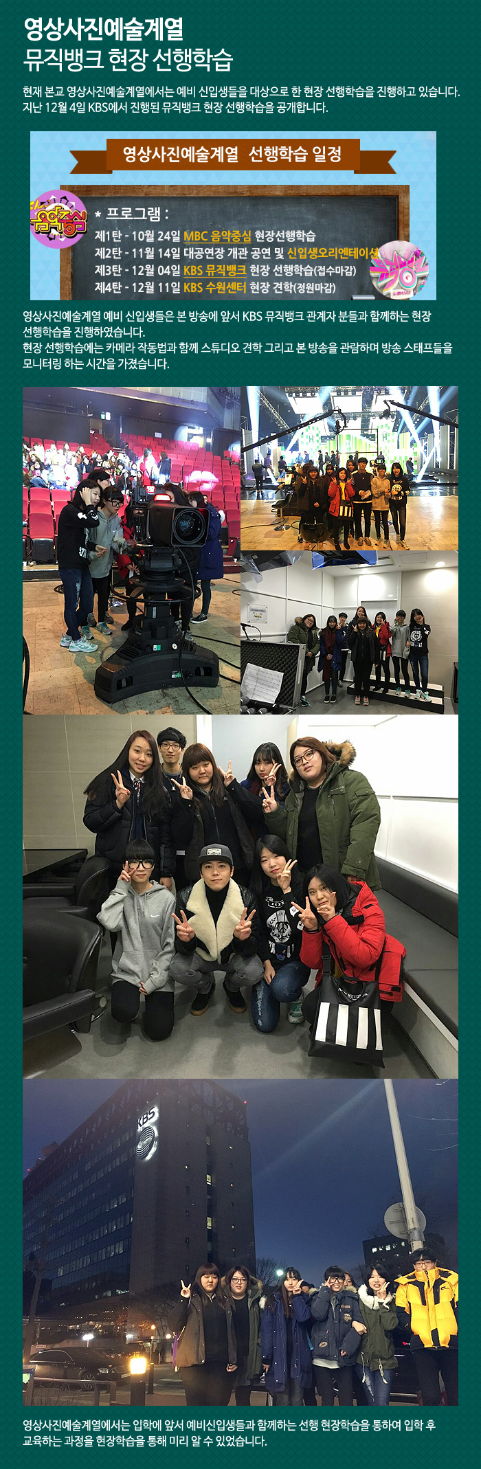 현재 본교 영상사진예술계열에서는 예비 신입생들을 대상으로 한 현장 선행학습을 진행하고 있습니다.