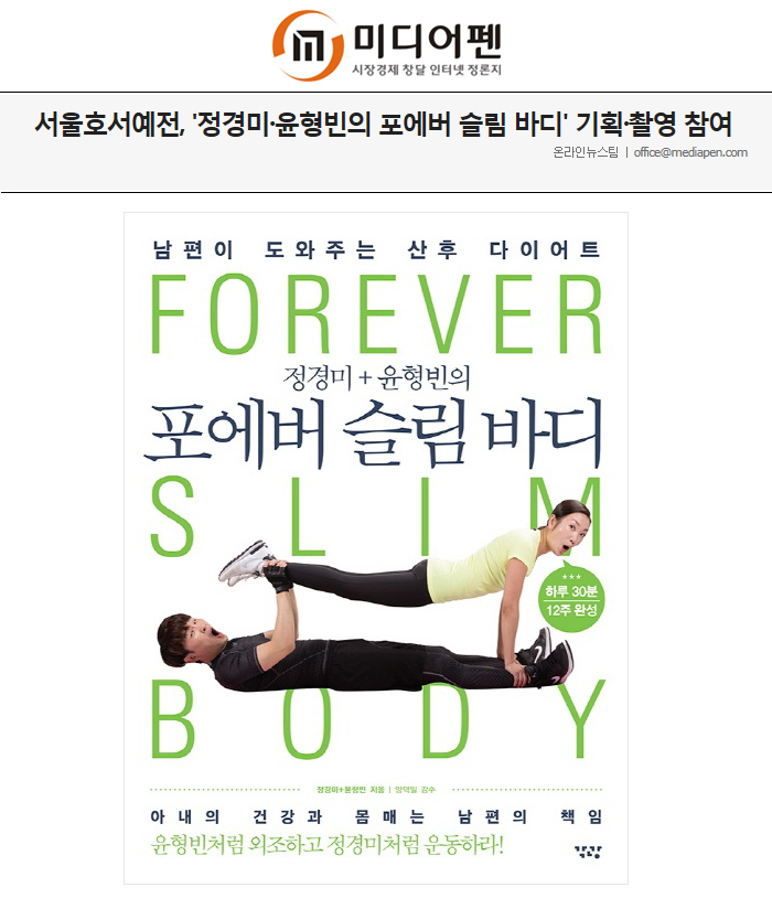 [미디어펜=온라인뉴스팀] 서울호서예술실용전문학교(이하 서울호서예전)는 영상사진예술계열 '코미디빅리그'와 '맛있는 녀석들' 등 인기 절정의 예능프로그램의 메인 작가인 김배근 교/강사 등이 기획하고 영상사진예술계열 유관수(사진과정 14학번)학생이 직접 촬영한 '정경미+윤형빈의 포에버 슬림 바디'가 출간됐다고 5일 밝혔다.
