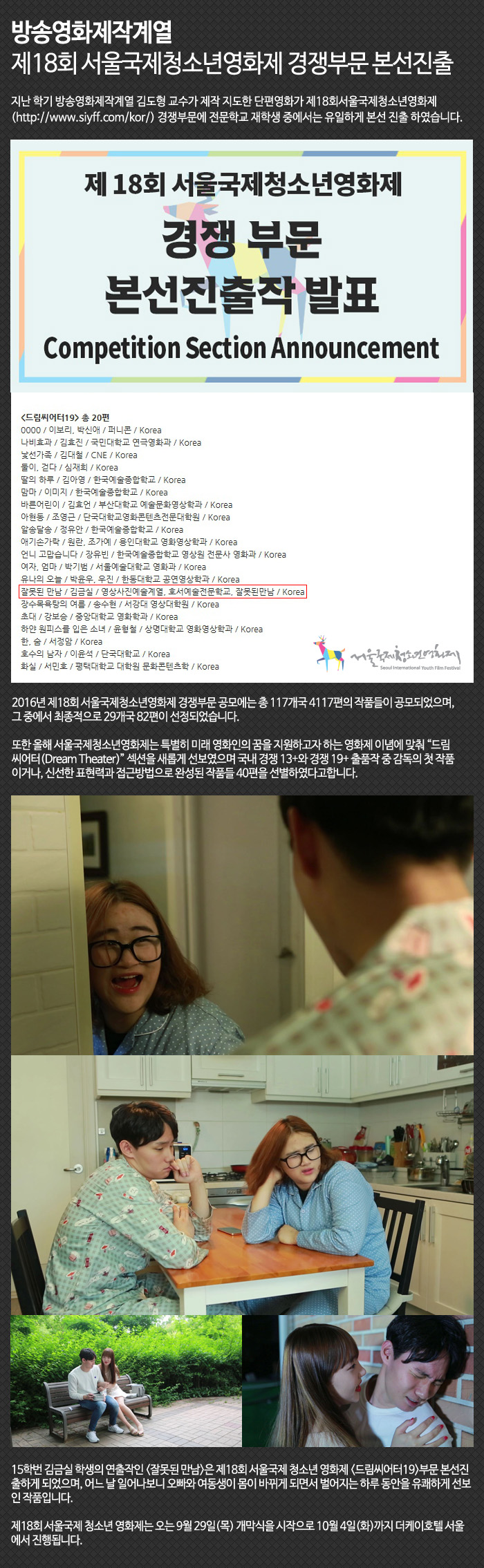 제18회 서울국제청소년영화제 경쟁부문 본선진출