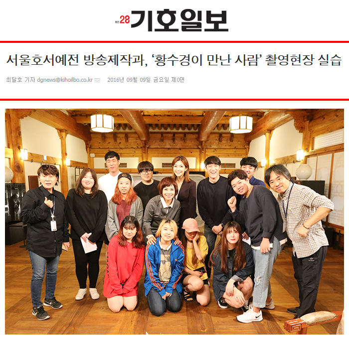서울호서예술실용전문학교(이하 서울호서예전) 방송영화제작계열의 방송제작과(연출, 촬영, 조명,편집)가 9월8일 (목)오후 1시 ‘황수경이 만난 사람’ 촬영 현장에서 현장실습을 진행했다.