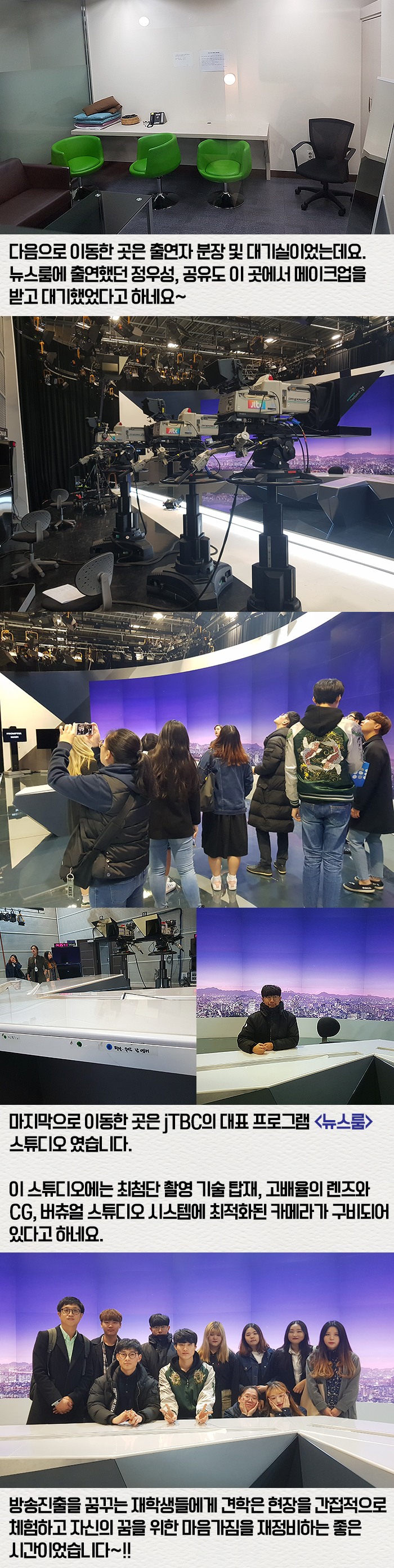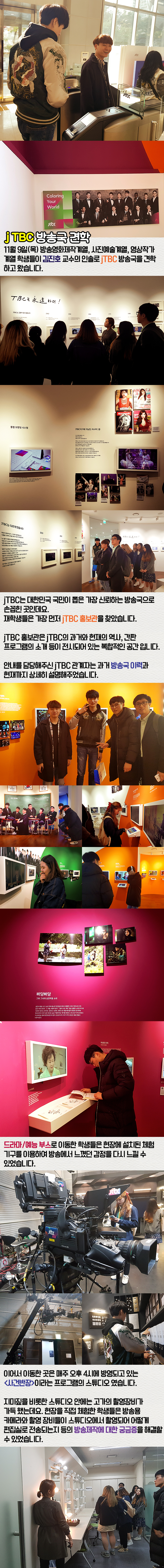 11월 9일(목) 방송영화제작계열, 사진예술계열, 영상작가계열 학생들이 김진호 교수의 인솔로 jTBC를 견학하고 왔습니다.