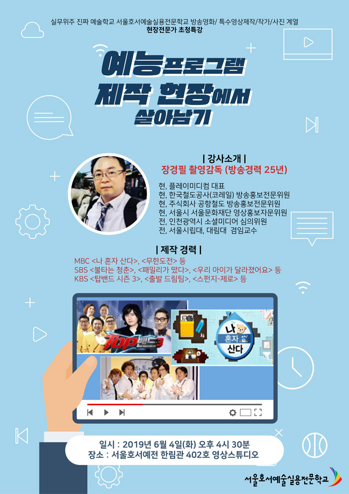방송영화제작계열, 유튜브제작계열 현장전문가 초청특강을 개최합니다.