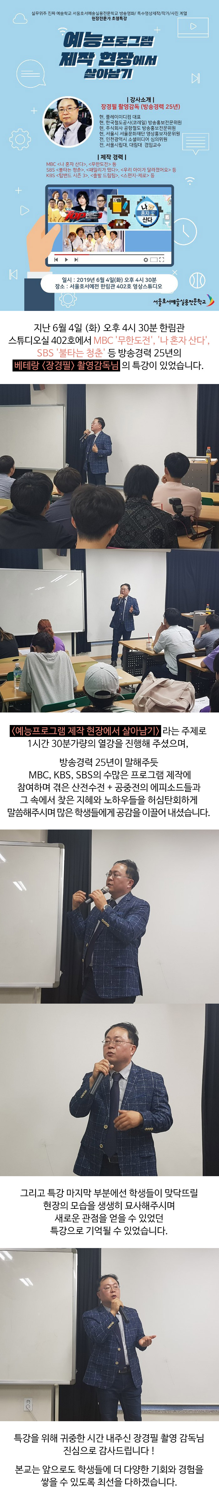 방송경력 25년의 베테랑 <장경필> 촬영감독님의 특강이 있었습니다.