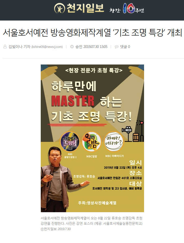 [언론보도]방송영화제작계열 ‘기초 조명 특강’ 개최