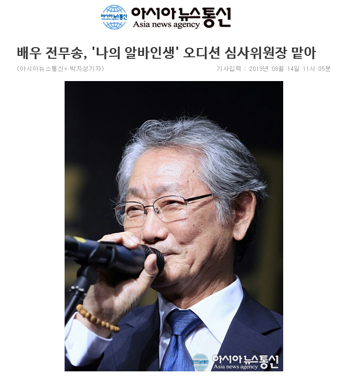 [언론보도]배우 전무송, '나의 알바인생' 오디션 심사위원장 맡아